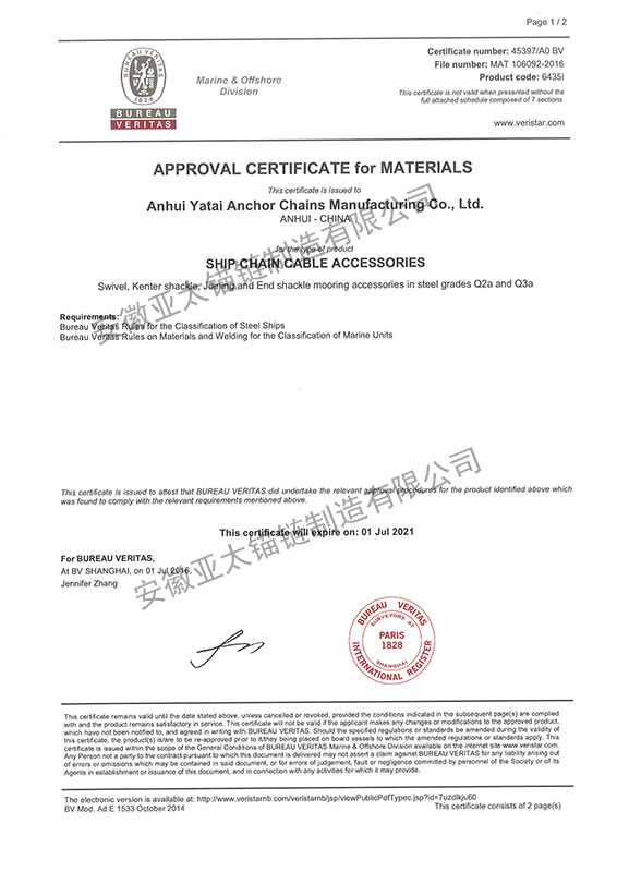 安徽亞太錨鏈制造有限公司是國家高新技術(shù)企業(yè),也是國家GB/T 549-2017《電焊錨鏈》標(biāo)準(zhǔn)的起草和制定單位之一。公司旗下設(shè)有錨鏈分廠、浮標(biāo)分廠、舾裝件分廠等多個分廠。公司專業(yè)從事φ12.5mm-φ107mm二、三級船用錨鏈、浮標(biāo)錨鏈、錨鏈附件,錨、船舶曬裝產(chǎn)品、航標(biāo)、系船浮、船型標(biāo)、多種規(guī)格海洋監(jiān)測浮標(biāo)及航標(biāo)燈等產(chǎn)品的生產(chǎn)、安裝和服務(wù)。目前公司的產(chǎn)品銷往全國各地船廠、碼頭、航標(biāo)處、航道局、海洋局,并已走上國際市場,如東南亞、中東、歐美等國家。